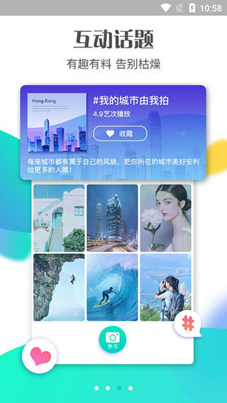 1、有热点话题互动,最喜欢的视频进行点赞、分享、评论和聊天。