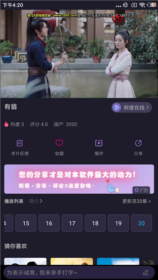 3、分享功能,支持微信朋友,朋友圈分享,用户可以将自己喜欢的视频通过微信分享分享给好友;