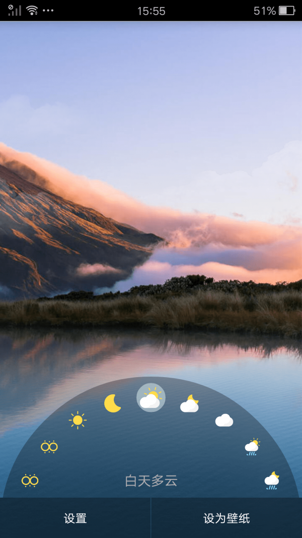 4、丰富:能够根据天气自动调节壁纸样式,多种模式可供选择,自动更换,为你带来不一样的壁纸体验。