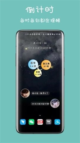 它可以帮助你记录生活中重要的日子,比如:离发工资还有多少天?离高考还有多少天?我需要多少天还清我的信用卡?你恋爱多久了?离生日还有多少天?孩子还有多久出生?今天过去了多少……