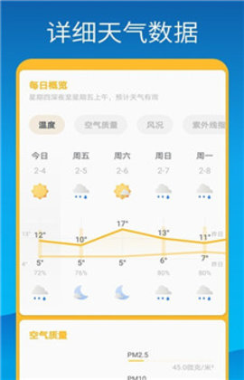 4、准确显示实时的温度、天气状况和空气质量变化情况。