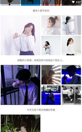 3、个性化的社区,有情感的文字,美丽的图片,搞笑的表情,文艺清新的女孩和小鲜肉。
