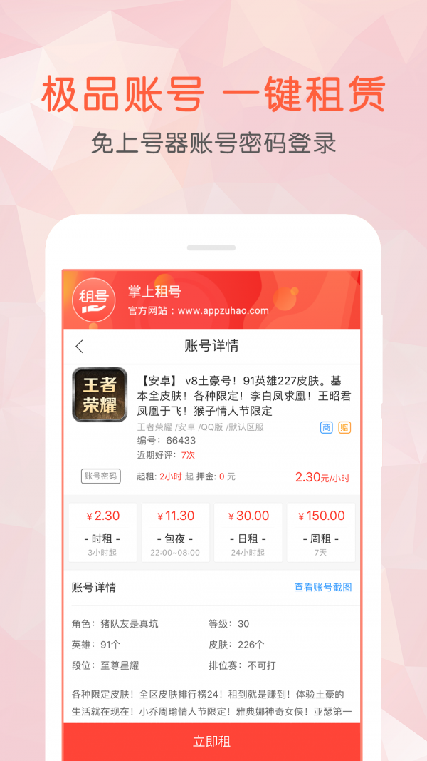 3.极品账号,一键租赁,免上号器,账号密码登录。