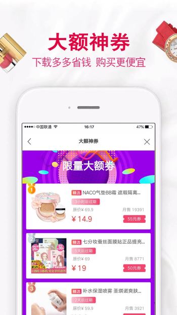 3.每买一件商品都可以省掉大部分的金额,上万张优惠券等你来领取;