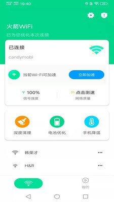 火箭wifi安卓版是一款专业好用的网络管理类软件,帮助用户拥有一个更加流畅高速的网络环境,并且还能及时发现在蹭网的设备进行移除或是拉入黑名单,让对方再也无法蹭网。火箭wifi手机版下载后除了能够加速网络,还能够实时监控网络的速度和安全性,为用户的上网安全保驾护航。