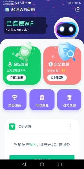 极速WiFi专家安卓版是一款非常专业的网络辅助类软件,用户可以使用它对自己连接的网络进行检测,看看是否存在潜在的风险,如果用户的网络经常有卡顿延迟,极速WiFi专家app下载后一键即可对网络进行加速,让用户可以拥有更加流畅安全的上网体验。