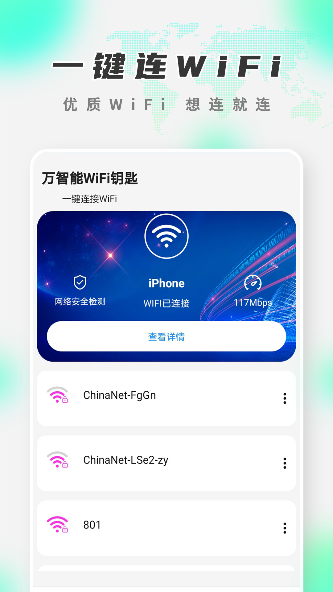 4、万智能WiFi钥匙下载安装后帮助用户更快更安全的上网