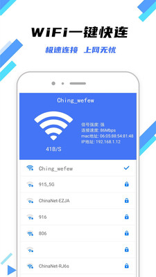 3.充分掌握网络连接状态,实时进行wifi测速,wifi信号监控。