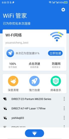 这款软件推荐给大家,欢迎下载使用,通过硬件加速,干扰信号过滤等专业技术和算法,帮助您解决信号虚弱的问题,加速上网速度,降低断网频率,让您享受更快速稳定的WiFi网络。