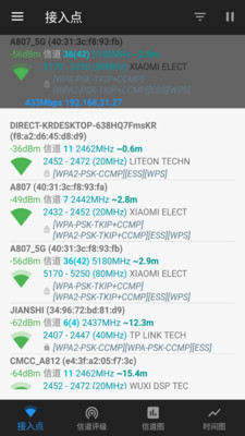 1.wifi信道手机软件检查附近的无线接入点,图形显示通道强度。