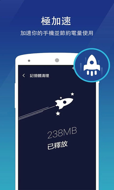 一键加速,关闭无用的后台应用程序和顽固的自启动过程,并延长电池寿命;