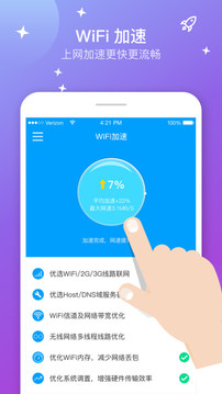 wifi上网加速器下载平台为你提供更全面的网速管理功能,还能为你增强手机与wifi发射设备等信号,为你带来诸多上网便利,让你上网更轻松,小编另外推荐几款好用的wifi软件:WiFi共享精灵、WiFi畅游、免费WiFi钥匙。