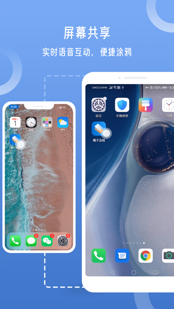 1.橘子远程工具可以手机语音实时共享,方便远程协助语音聊天。