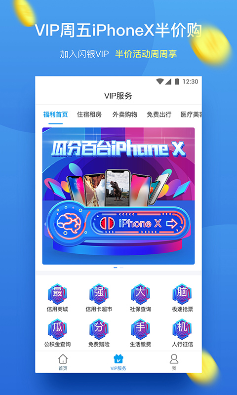 VIP劲享“Blue Friday”每周五狂欢,iPhoneX半价购买!还有免费出行等多种特权任你享用 。
