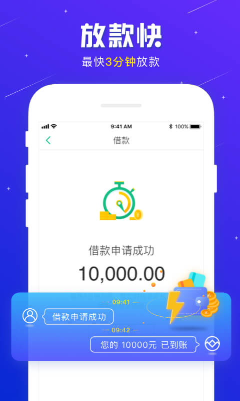 5、极速的审批速度,最快只需要3秒就能马上通过平台的智能审核并发放贷款;