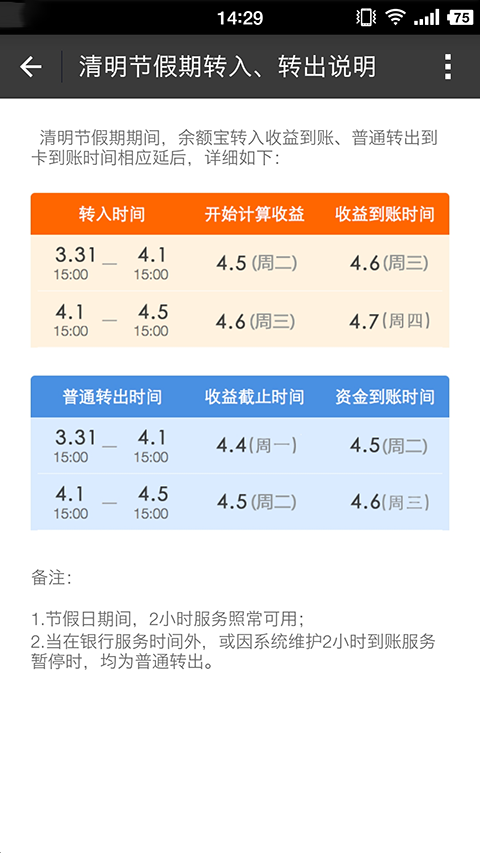 6、余额宝转入后需要基金公司份额生效后才会开始计算收益,工作日15:00点前转入,第二个工作日生效;工作日15:00点后需要第三个工作日生效