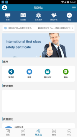 2.ripple plus可以方便、安全地存储10多种国际主流数字货币,可以快速完成数字资产的转入、转出和交易。