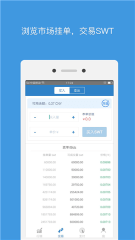 2.交易:查看、买入和卖出SWT,井通系统会为用户寻找最优的成交