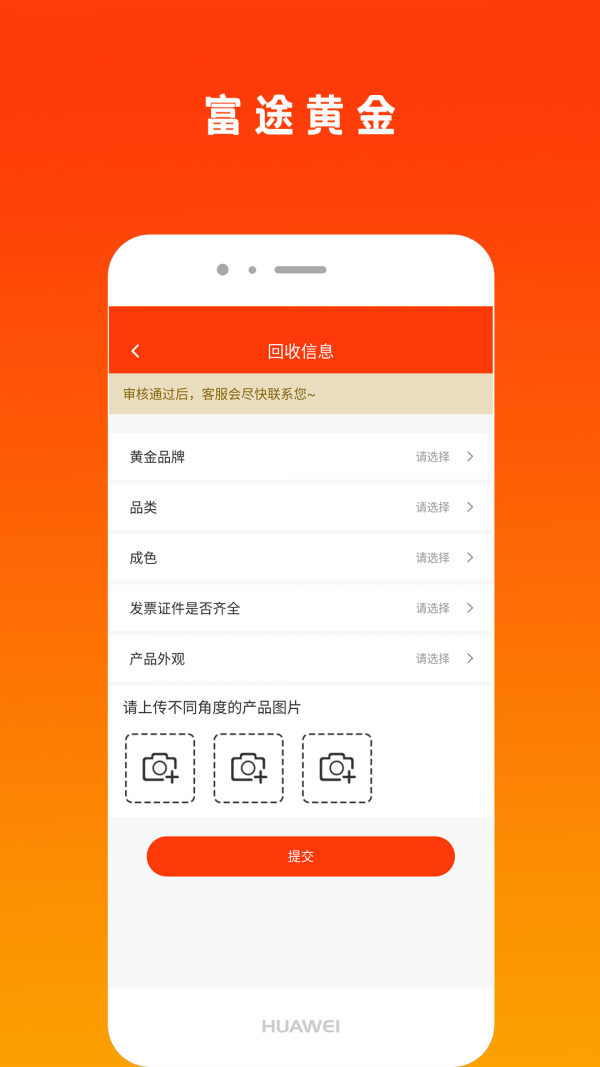 4、图文回收:用户申请回收时可在平台上编辑文字信息上传黄金图片