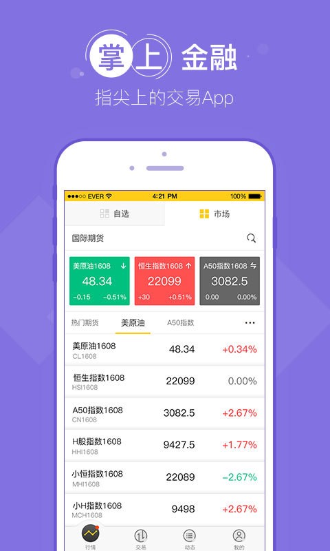 中量金融安卓版是一款非常专业的投资理财类产品,由华尔街归国团队倾力打造,包括国际期货、外汇交易、美国股票、香港股市等多种多样国际性二级市场交易类型,这里可以查看全球的股市情况,解决了国内大多数投资者信息不准确的情况。