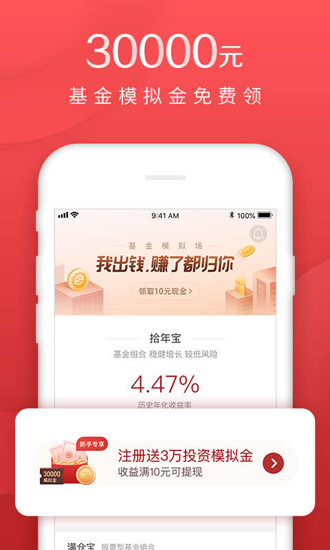 5.新手福利:完成简理财下载安装,体验全新版本,入场送您30000远模拟金,收益全都纳入囊中。
