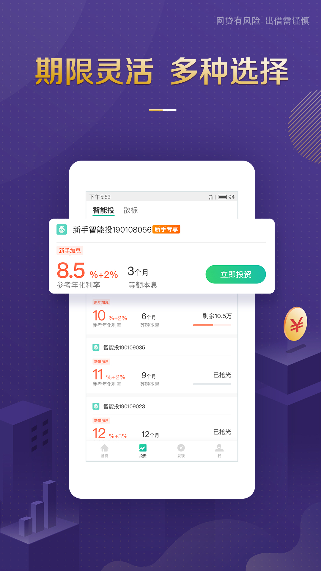 你我金融借款平台提供丰富的投资产品,年化8%-18%收益