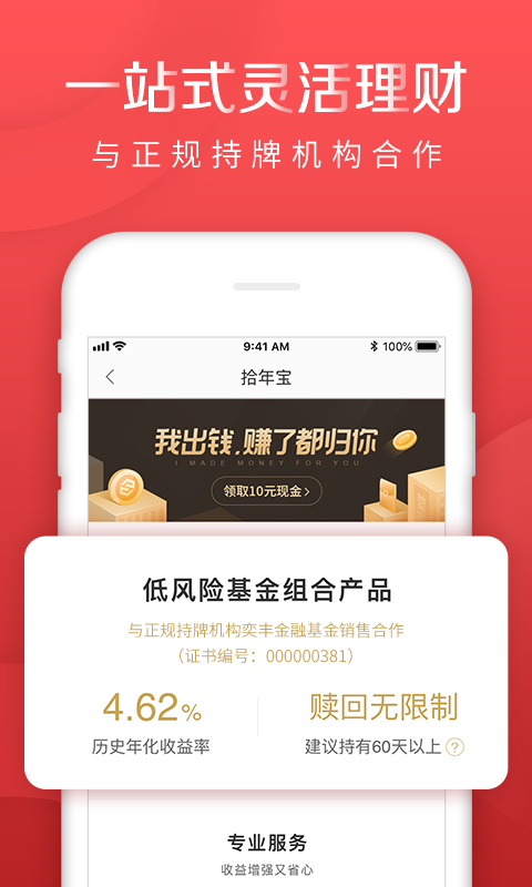 财富管理工具,具有智能匹配优质资产、灵活申请转出等优势。