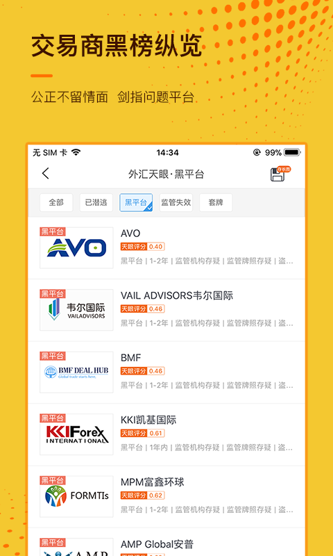 - 外汇新闻:提供包括外汇行业新闻、虚假交易商曝光、天眼官方新闻等内容,行业大势、交易商即时情况实时掌握。