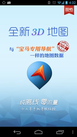 图吧导航GPS离线版是由图吧推出的一款专业导航软件,新版本的图吧导航GPS离线版提供了炫酷3D效果、支持3D导航和3D地图,提供了与宝马预装导航相同的导航地图数据!