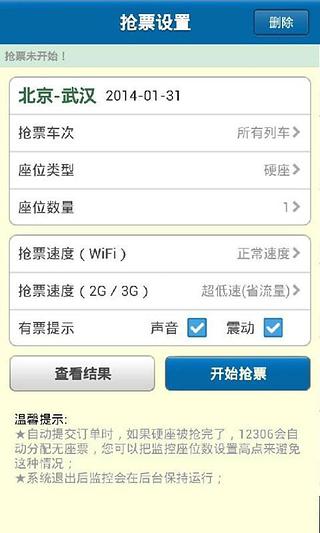 自动抢票,放票、余票、退票和漏票一出现立刻提醒;