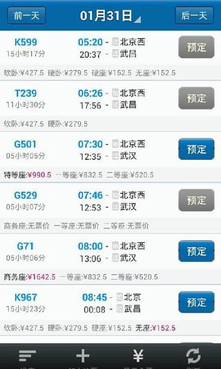 快速查询火车时刻表、车次、余票、票价 并可按需排序;