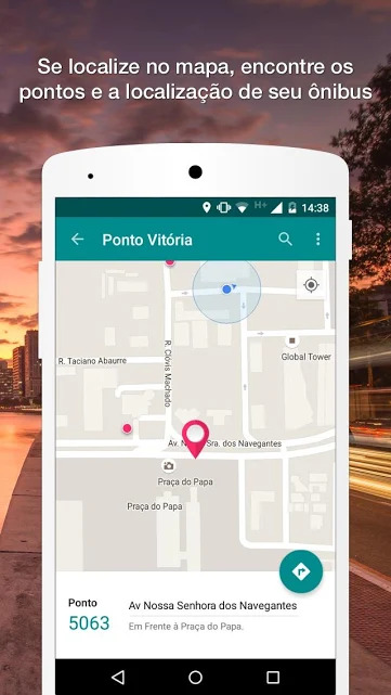 2、Saiba多少分钟都留给他的公共汽车Transcol或胜利点(蓝鳕鱼 - 公交胜利)获取与实时到达时间天气点。要使用,Transcol在线或维多利亚点之间选择,选择地图上的一个点,查看预测。不要浪费buz?o;