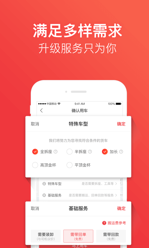 2、各种车型众多,可说明你要运输的物品,司机会开你下单的车型来为你提供运输服务。