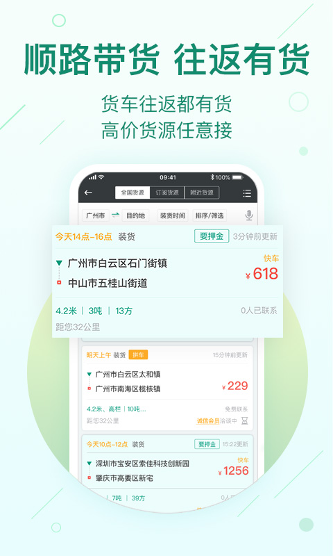 2、海量货物信息,让司机找货更方便,来回都可运货。