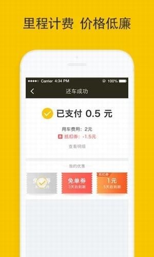 2、租车费用更低,租车出行更便利,出行更实惠,大家无论何时出门都能时刻在线寻找附近单车。