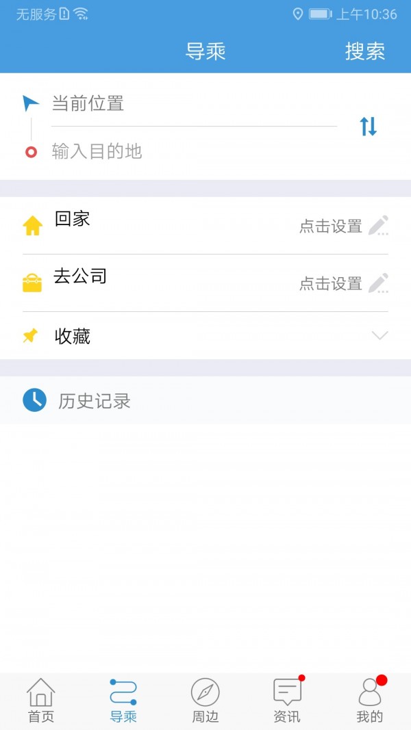 用户可以通过首页点击下面 “导乘”进入导乘查询页面。输入乘车起点站、终点站,点击搜索,进入查询结果页面,查询结果显示多种方案,有直达的方案或者换乘方案。
