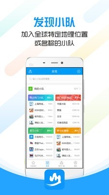 3、发现并创建团队:用户通过发现页面、地图找小队、小队搜索等等方式能发现更多地理位置上的小队。