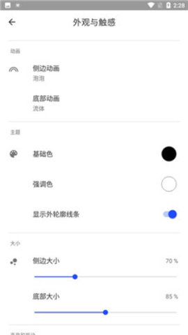 5.流体手势全部设置成透明,在滑动操作时还会有滑动的动画(细线),有强迫症的建议用悬浮菜单