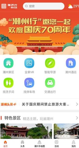 潮州行应用是智慧旅游服务软件,提供优质旅游服务,潮州行应用程序为用户带来一个非常详细的潮州地区旅游策略,支持在线内容的直接搜索,满足用户的需求,操作方便,界面简单。