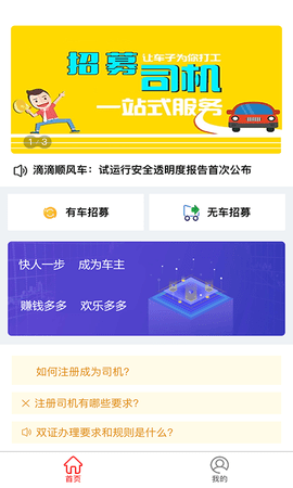 顺风车主APP下载安装可以让你作为司机随时来这里,每个人都可以来这里完善的个人信息,这里的司机都是来自世界各地的用户,通过平台认证然后你就可以获得司机的身份,随时处理订单