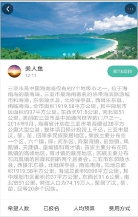 1、与朋友一起旅行的申请表。旅行者可以发布他们想去的地方,