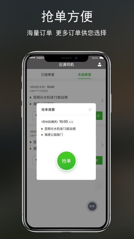 1.云滴司机端在线抓单可以提高您的接单效率。