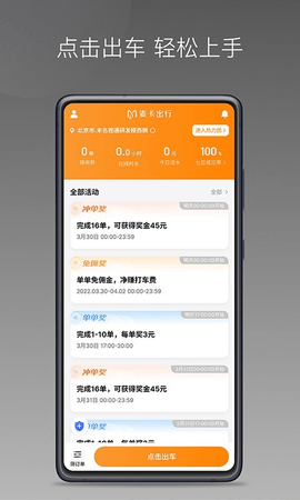 麦卡出行车主端APP是一个非常易于使用的出行软件。可以自由接受更多的订单信息。订单稳定可以及时更新,单击一下即可快速收到订单,平台推出了大量福利活动轻松赚取更多酬劳。