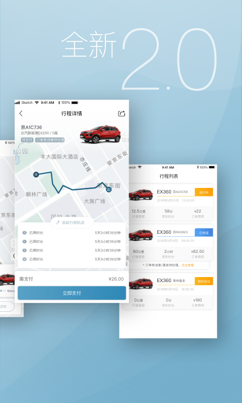 3.支持分时汽车模式,租车时,用户可以选择两种模式,技术员车和预定车。