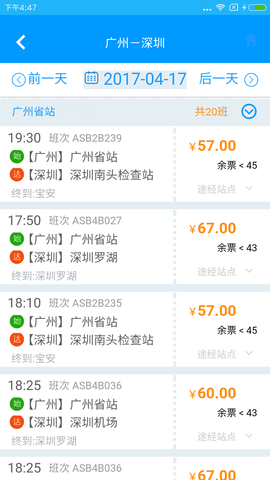 3、在这里,用户可以在线查询各类车辆的行程信息,了解剩余车票详情,快速购票。
