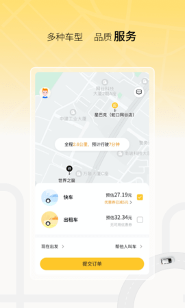 1、为您带来更便捷高效的出行服务平台,您可以选择自己喜欢的出行方式