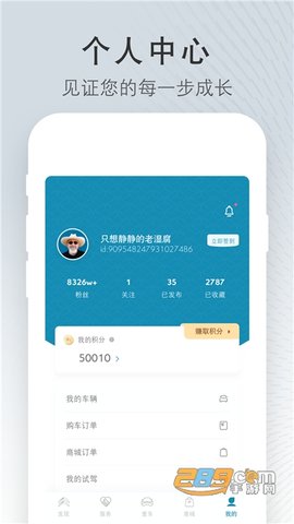 3、查看我的车辆订单和积分订单,发布记录,留言和收藏,修改个人信息设置,联系在线客服。