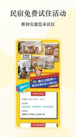 1、我们将定期为用户推出各种免费民宿试用活动。用户可以选择自己喜欢的民宿风格和特色,在线注册并提交试用申请。