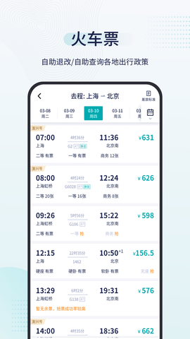 1、火车票查询,实时车票查询快捷方便;多票订票、火车票订票,实行统一出行政策