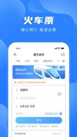 1、团子出行满足用户日常出行需求,如在线预订汽车票、汽车票、火车票、包车等。